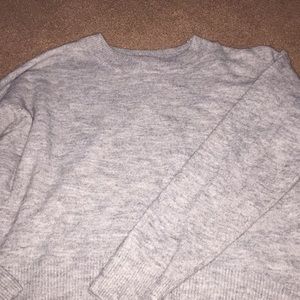 Gray sweater! It’s more of a dressy sweater. Super cute with leggings and boots! The front is shorter and longer in the back!