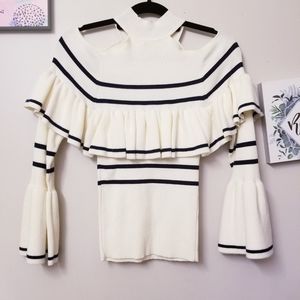 A Ivory /Cream off white with black strike sweater from Cocoon Lovely very beautiful sweat with a Bell sleeves.. Details and design is super lovely.. What not to love guys โค๐โค๐