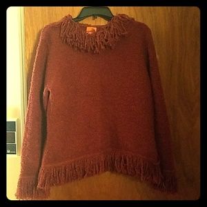 Warm and cozy dark red fringed sweater just in time for the cool weather!
