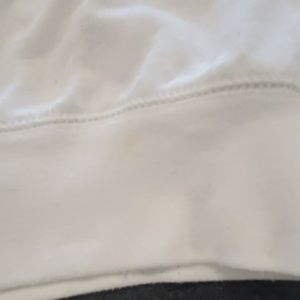 Small stain on the back. Shown in picture. Bleach would get it out.