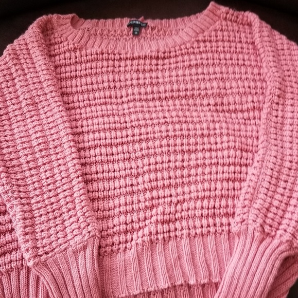 Express Salmon colored sweater. Very soft, size medium but is kinda oversized so it fits like a large.