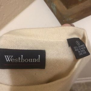 Ivory cashmere crewneck sweater.