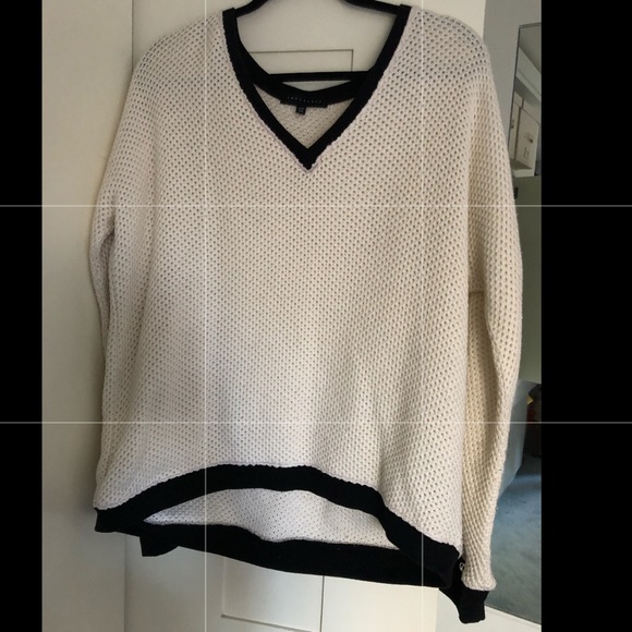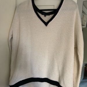 V neck white knit sweater with black trimming