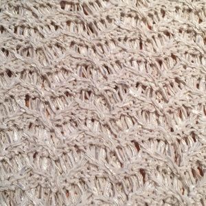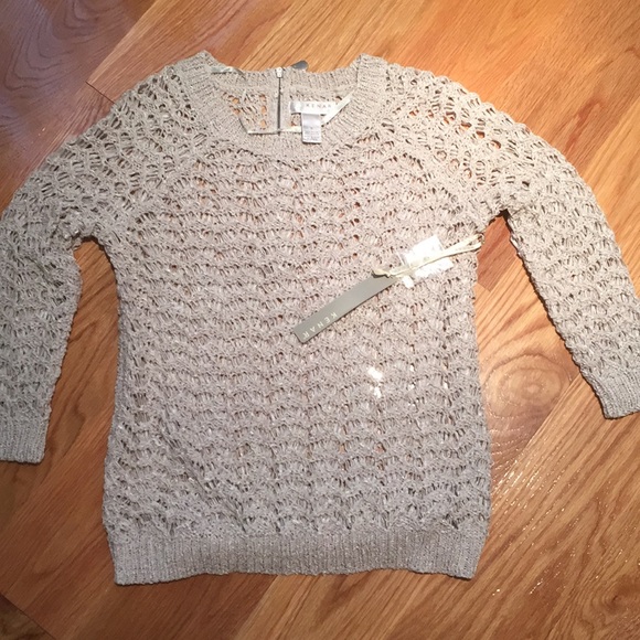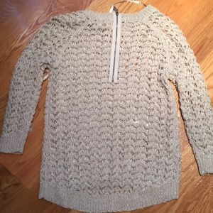 Beautiful cream colored, open knit sweater. Back zip. Lower in back, higher in front. I am 5’8” and the front hits below belt. Never worn. Perfect any season.