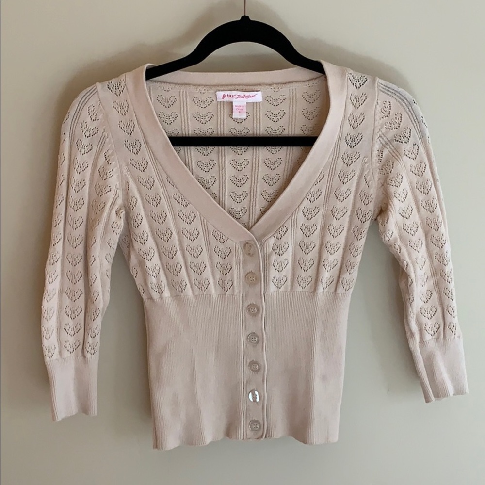 Creme Fitted lightweight sweater. Runs small but form fitting.