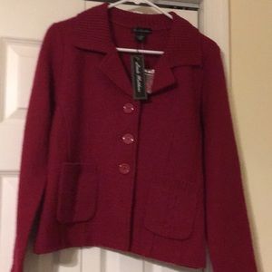 Coat sweater with two front pockets. Ribbing on collar. Never worn