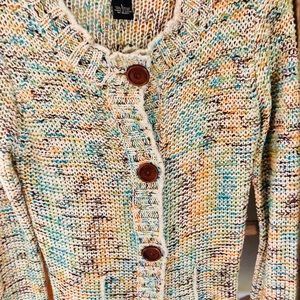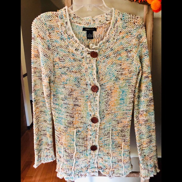 BCBG MaxAzria Sweater, multi-colored (blue, green, orange, brown, and cream colors) Fits like a Medium.