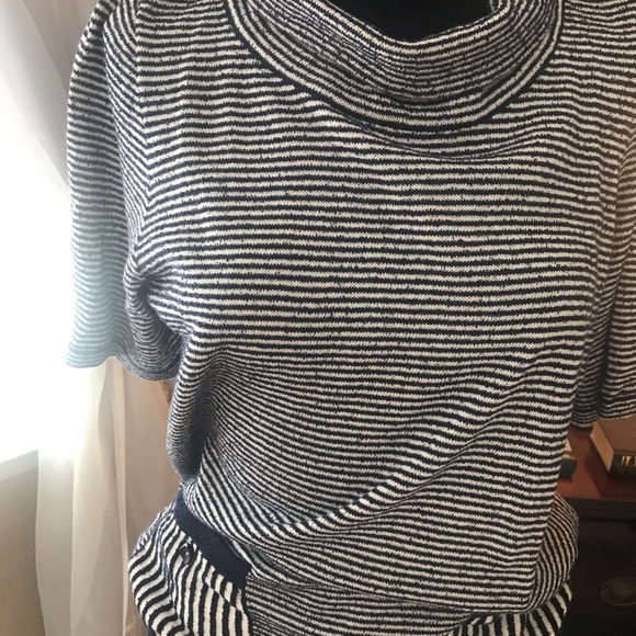 Navy blue and white stripped wool blend, w/pockets