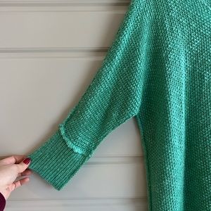 Like new local boutique sweater. Thin material, need to wear a tank or shirt underneath. Size small/medium, teal. Too big for me and can’t return. NWOT