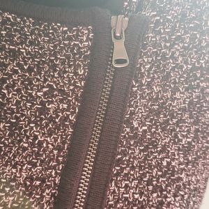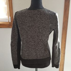 Loft black and white flecked sweater with diagonal zipper in front. Solid black side panels.