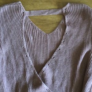 Cozy dust pink sweater with open back. Size large but fits like a medium.