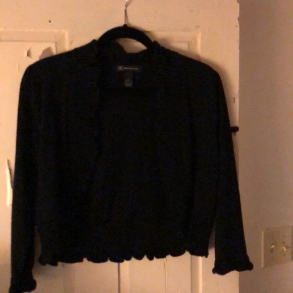 Beautiful cropped waisted cardigan. Perfect over a curvy dress to accent figure. Feminine black cardi. Paired w classic figure flattering dress I’m selling.