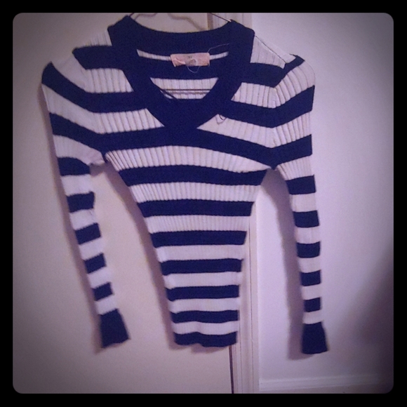 Flat neck sweater. Full-length sleeves. Worn a few times. Navy blue and off-white stripes