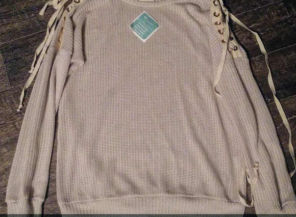 Cream colored sweater from EnviMe Boutique. Brand new with the tags still on it, size small $30