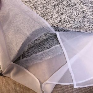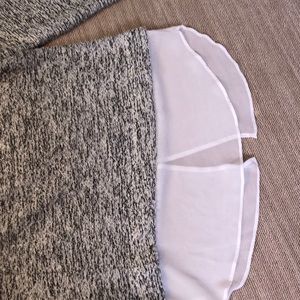 Grayish/white and black sweater. Has sheer detail on bottom that makes for a more elegant look.