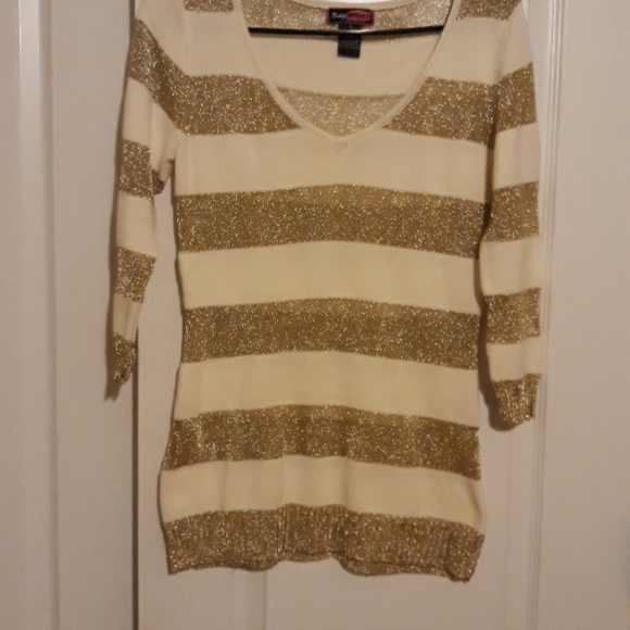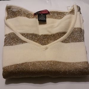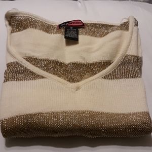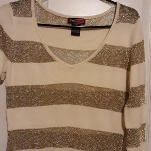 Soft Sweater with Gold stripes Colors Cream and Gold Size M 52% cotton, 25% acrylic 23% metallic