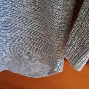 Medium blue sweater tunic with boat neck and shirt tail bottom