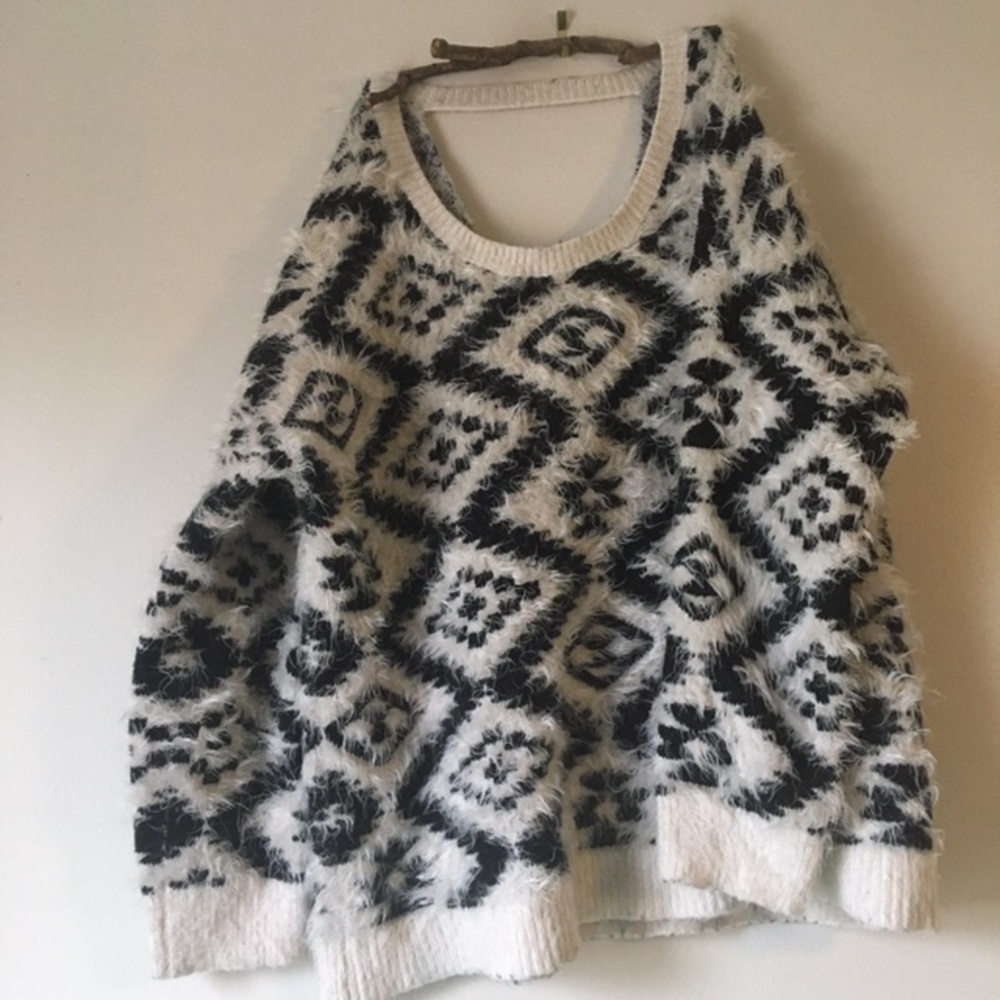 Cozy, fuzzy, and so so snuggly! Reversible- crew neck for daytime, plunging neckline for nighttime.