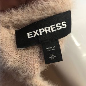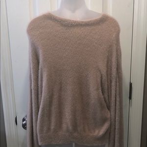 Gorgeous light pinkish/cream sweater. Feels so soft, like cashmere! Keeps you warm but not heavy at all. Doesn’t feel scratchy and so cute with jeans and long enough to tuck. Worn once, like new condition