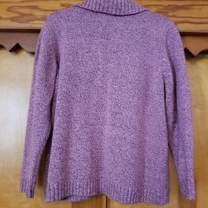 Pink and black weaved pullover sweater. Has collar and three buttons. Machine washable and dry.