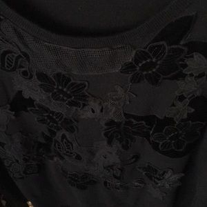 Scoop neck black on black long sleeve sweater.