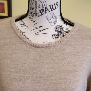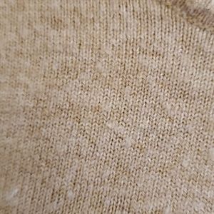 Beige sweater, mid length hip, lite weight 100% acrylic, machine wash, tumble dry low