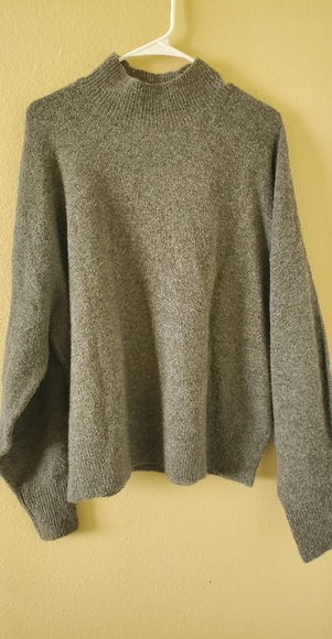 Basic knit sweater with mock neck, very cozy and comfy. Flexible material.