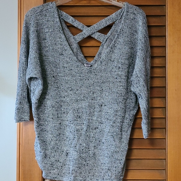 Grey sweater with black and silver, runs small