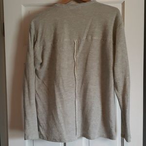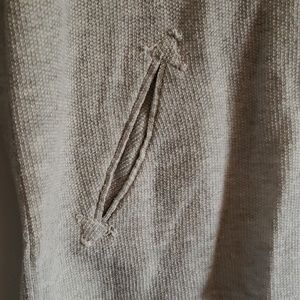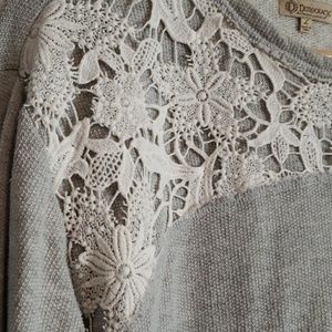 Gray sweater/sweatshirt with lace top and front pockets.