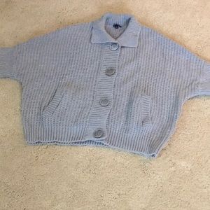 Heavy knit 100% cotton short sleeve front button sweater. Light gray with front pockets