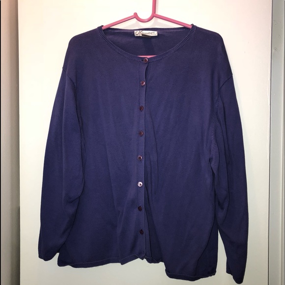 100% Cotton. Big & comfy cardigan with shines purple buttons going down the middle.
