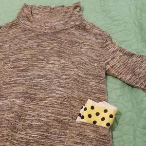 This us a great casual sweater. cowel neck, 3/4 length sleeves, 2 front pockets - (placed low at your hips) knit blend. Long sweater, hangs down to top of thigh/ over butt. Goes with everything! Great with jeans or leggings! Used large, by Reborn. Runs small in arms .pre
