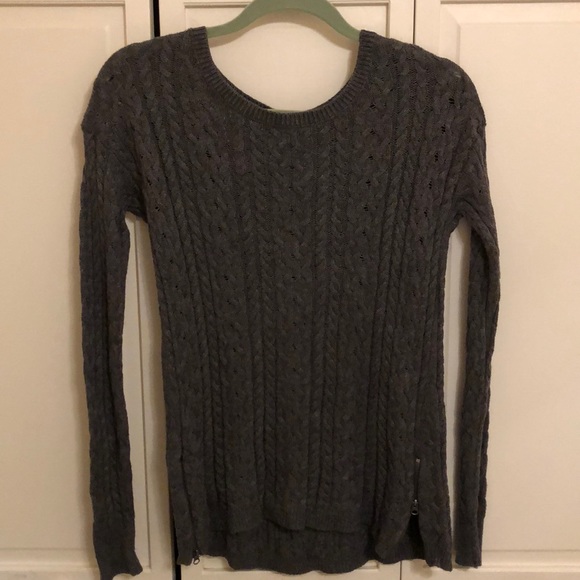 Lightweight charcoal sweater with zippers on each bottom side.