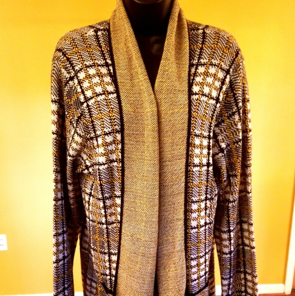 Beautiful black, gold, gray, and cream Ruby Road sweater. 100% acrylic