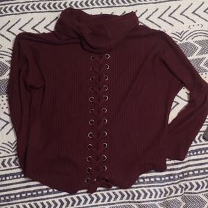 Dark maroon sweater with a cute lace up back