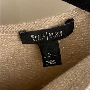 WHBM- NEVER BEEN WORN. Beautiful peplum light weight sweater with cute gold sparkle sew in. Was originally bought for a holiday photo.. but perfect for work, dinner, and date nights.