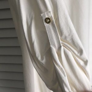 Rayon and Spandex cold waters to wash, sleves can be pulled up and buttoned with a pale white