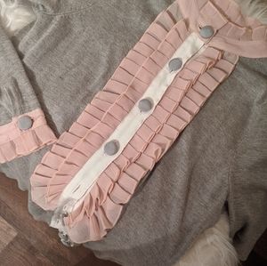 Boutique cardigan sweater with pink ruffle collar and sleeves