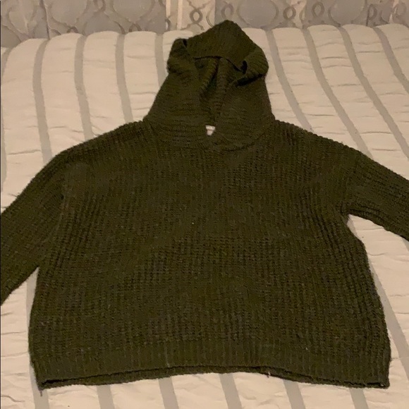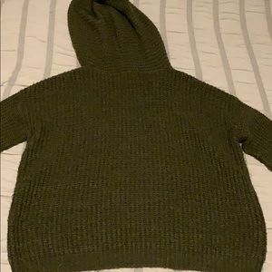Navy green sweater with hoodie.
