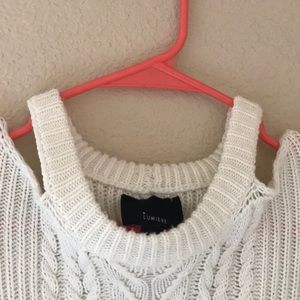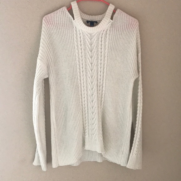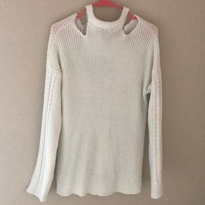 White Sweater w/Open Shoulders and detailing going down the middle and sleeves