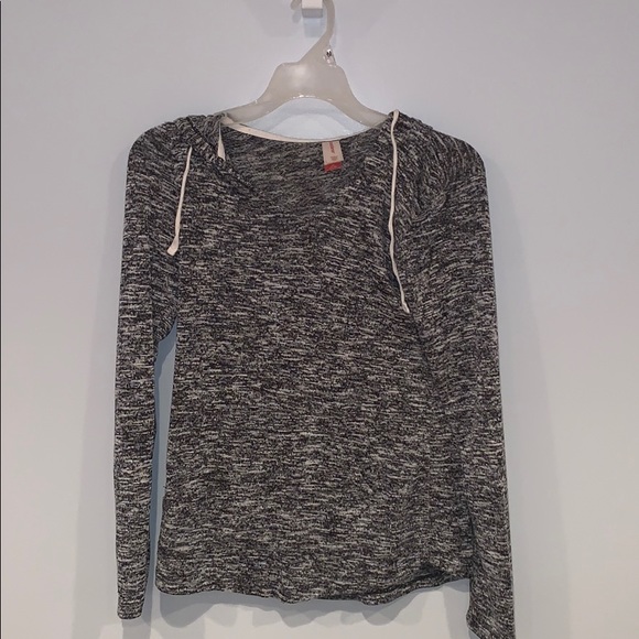 Really cute sweater. Lightweight material. Hood with drawstrings.