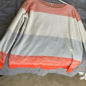 Peachy orange color and cream white. Very soft and warm. Only worn ones. Large