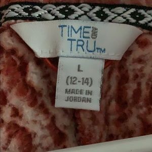 Pink and white sweater, zipper, soft on the inside and out (never worn)