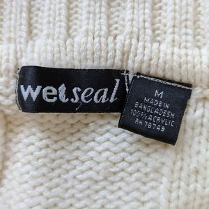 Cute sweater with a beautiful pattern in the front and going down the sleeves. In great shape! I loved this sweater! It does not fit anymore.