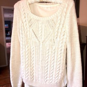 Cream Anthropologie sweater by Moth. Has a built in cami that is visible at the bottom and at sides. Size is small and it’s in very good condition.