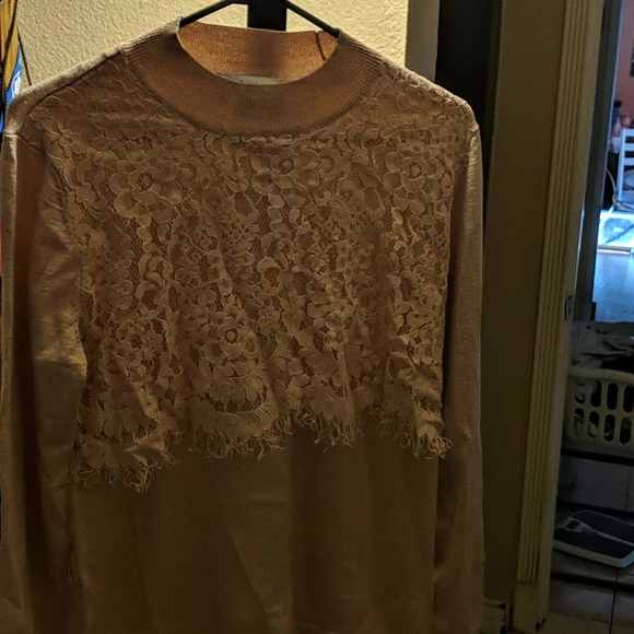 Cute light fitting sweater with lace never worn it's new without tags