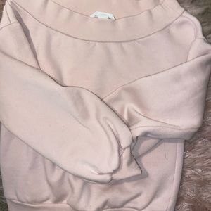 Soft and comfy pink off the shoulder sweater!! Really cute and fits up to medium depending on desired looseness