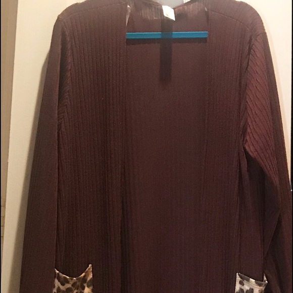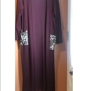 New. Long. Duster sweater. . Leopard pocket s. Size 2 x