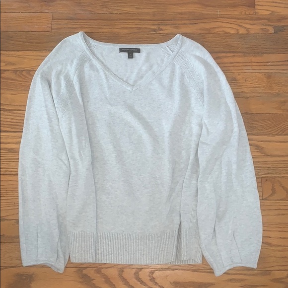 Sweater from Banana Republic. V-neck and wider sleeves. Light grey and never worn. Didn’t like the fit on me. From a non smoking and bug free home. Excellent condition.