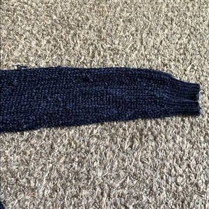 Blue knitted sweater, knits are falling out but that’s how it was bought